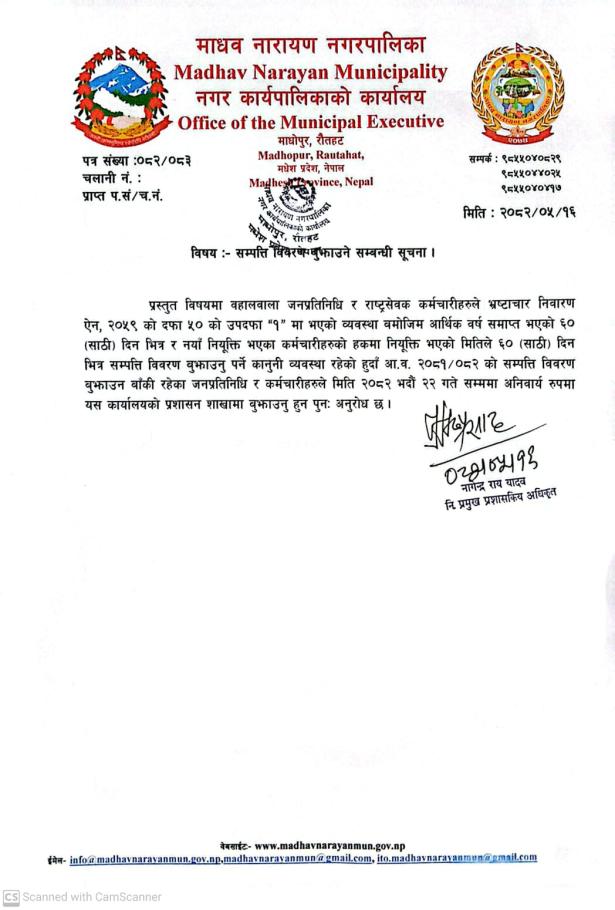 सम्पति विवरण समयमै बुझाउने सम्बन्धि अत्यन्त जरुरी सूचना !!!